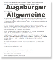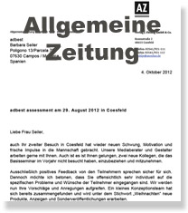 „Die adbest Methode hat unsere Mitarbeiter in der Anzeigenproduktion und dem Anzeigenverkauf zu mehr Verständnis für den Kunden und seine Wünsche sensibilisiert. Durch die klare und knackige Form der Methode wird dies auch nachhaltig im Verkauf eingesetzt und führt zu Verbesserungen der Anzeigen. Absolut praxisorientiert und erprobt, effektiv und nachhaltig, so mein Fazit.“